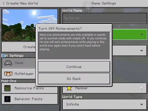 - Launch Minecraft Pocket Edition and navigate to the world settings.