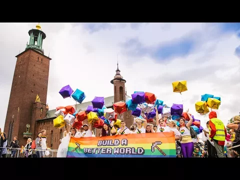 Here at Mojang, we were thrilled to participate in the Pride Parade in 2017, held in Stockholm with a theme centered around Minecraft PE. It was a memorable time as we strolled through the beautiful Stockholm, which hosted numerous events. There was plenty of dancing, loud music, and an abundance of helium balloons celebrating the game Minecraft Pocket Edition!